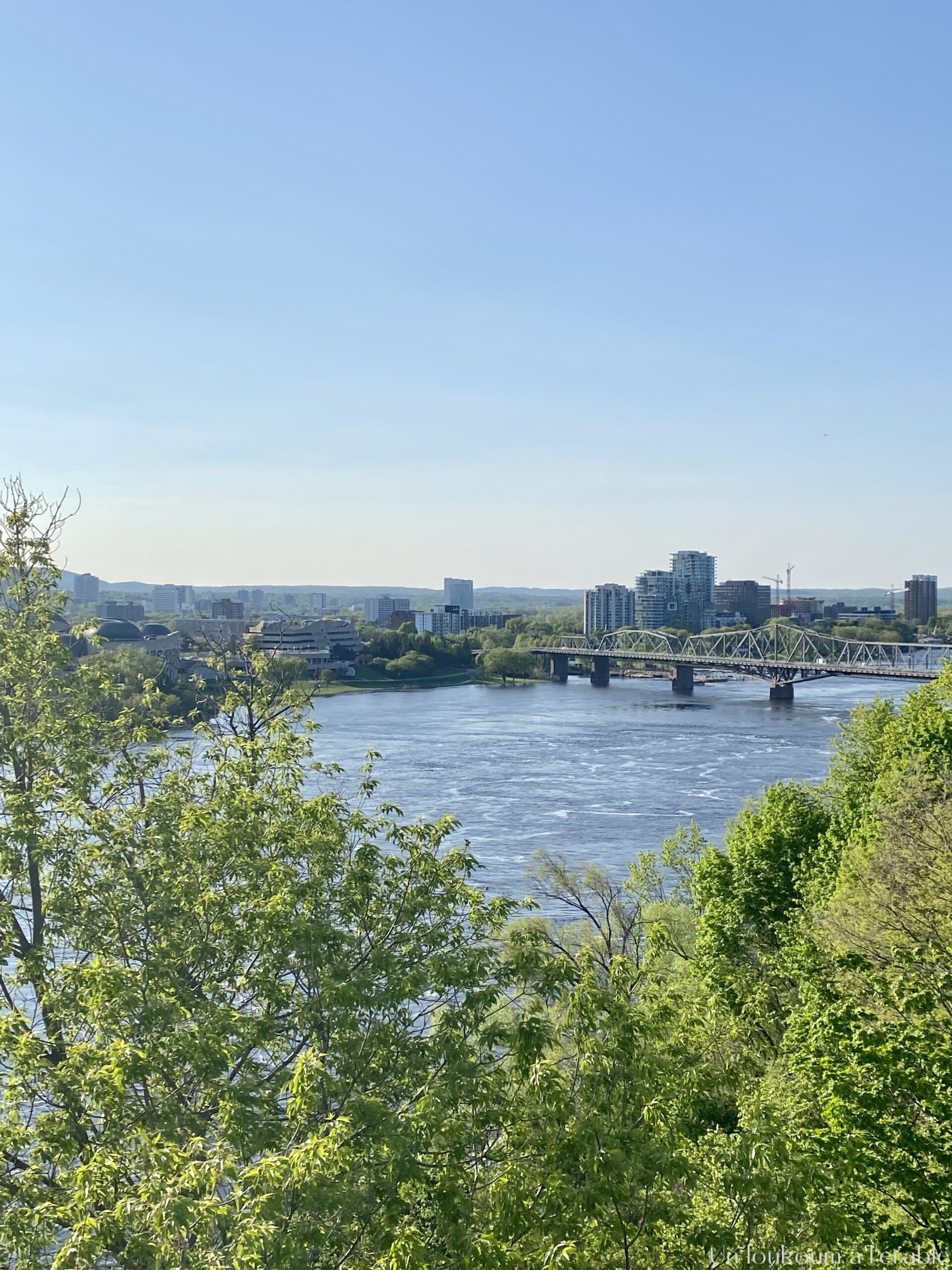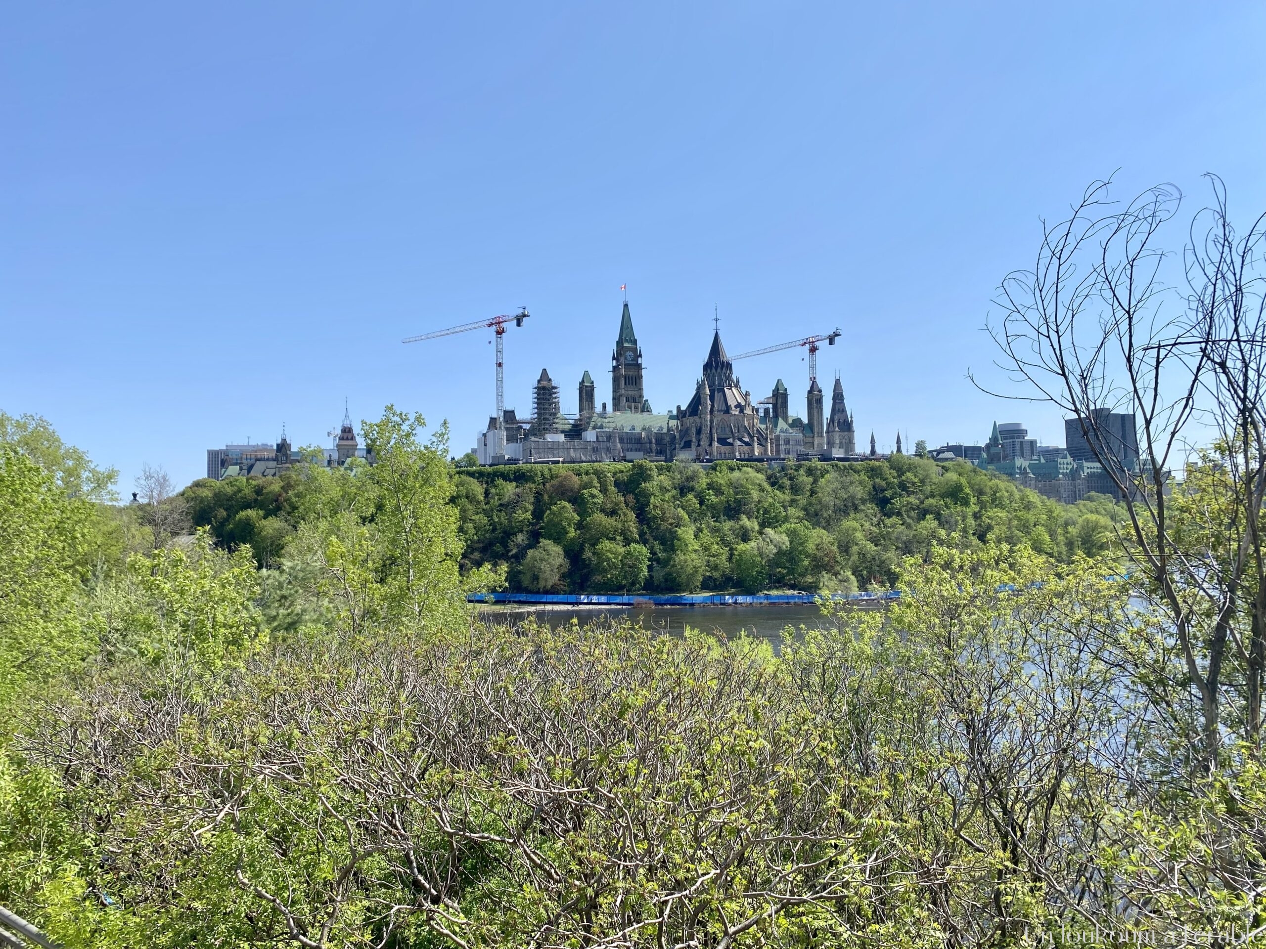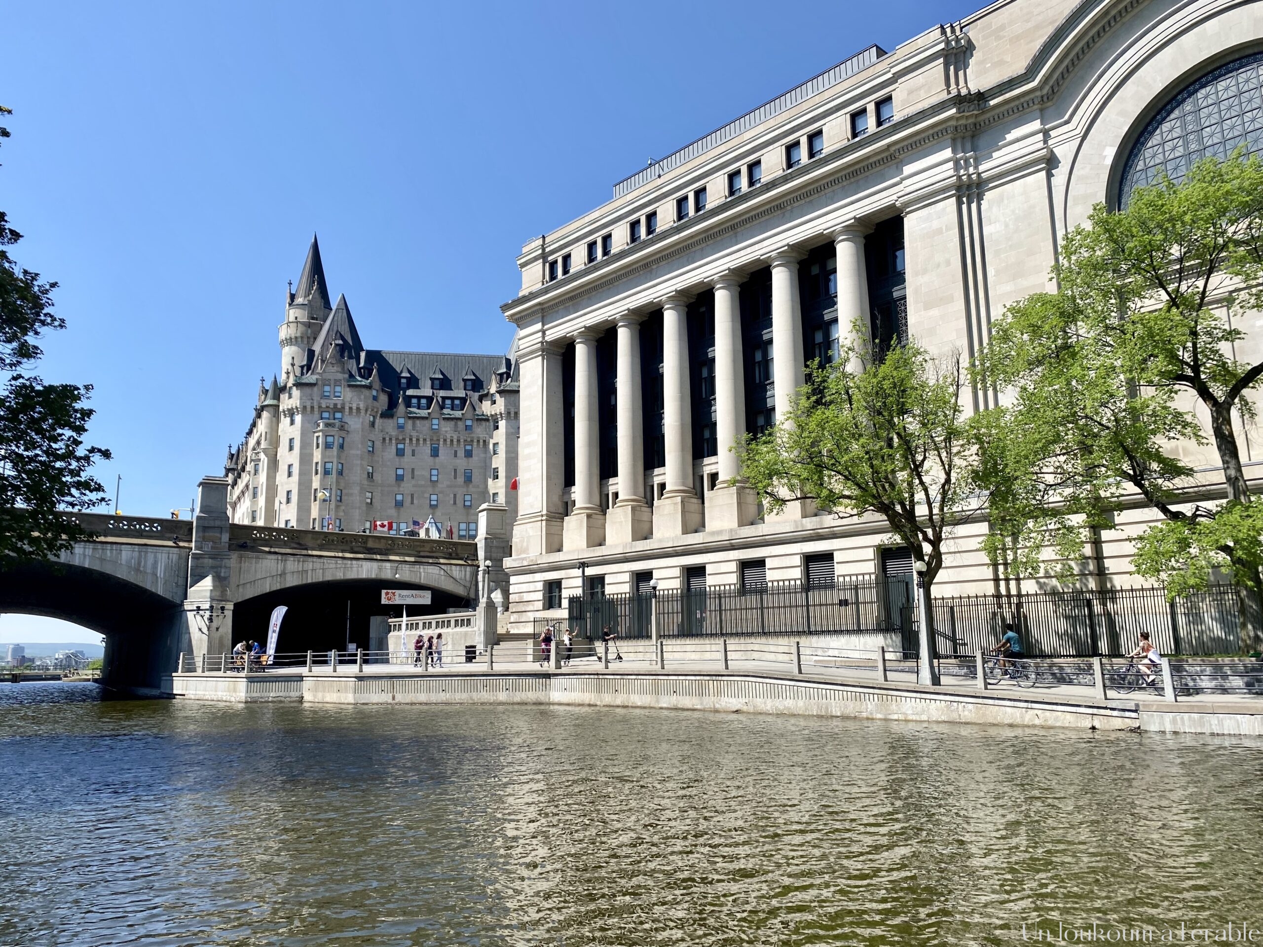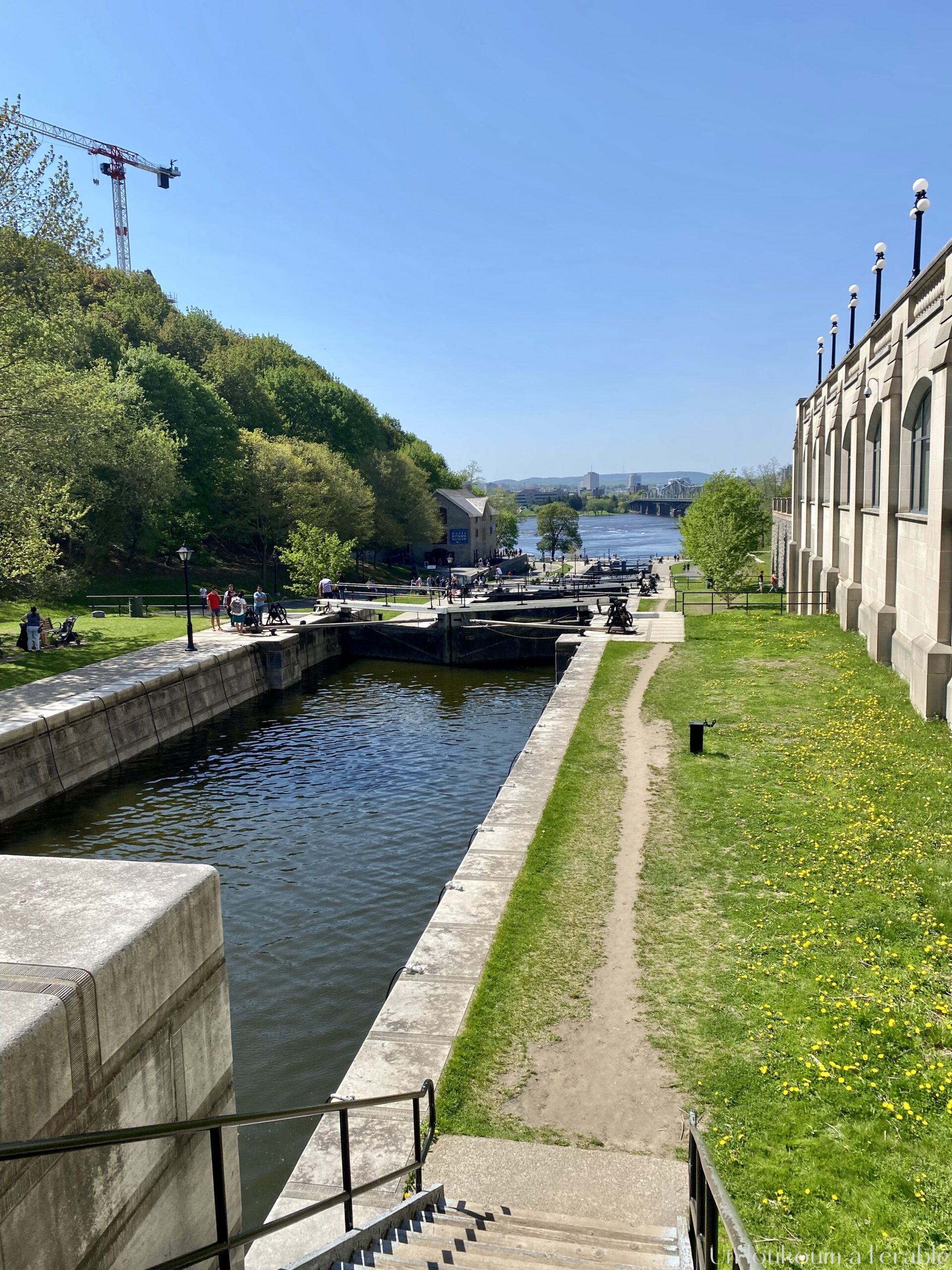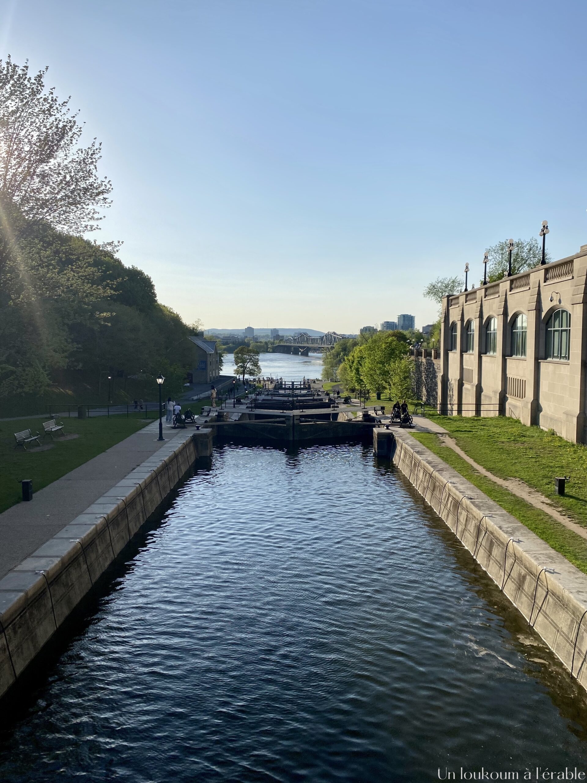 Il ne faut pas être pressé ou avoir peur de se perdre en faisant cette balade car elle peut vous porter loin en fonction des chemins qui sont ouverts – ou non. Depuis le contrebas des écluses, nous avons une très belle vue sur le Parlement, le Fairmount Château Laurier (ces fameux hôtels de luxe de style château qu’on retrouve un peu partout au Canada) et Gatineau, de l’autre côté de la rivière des Outaouais.