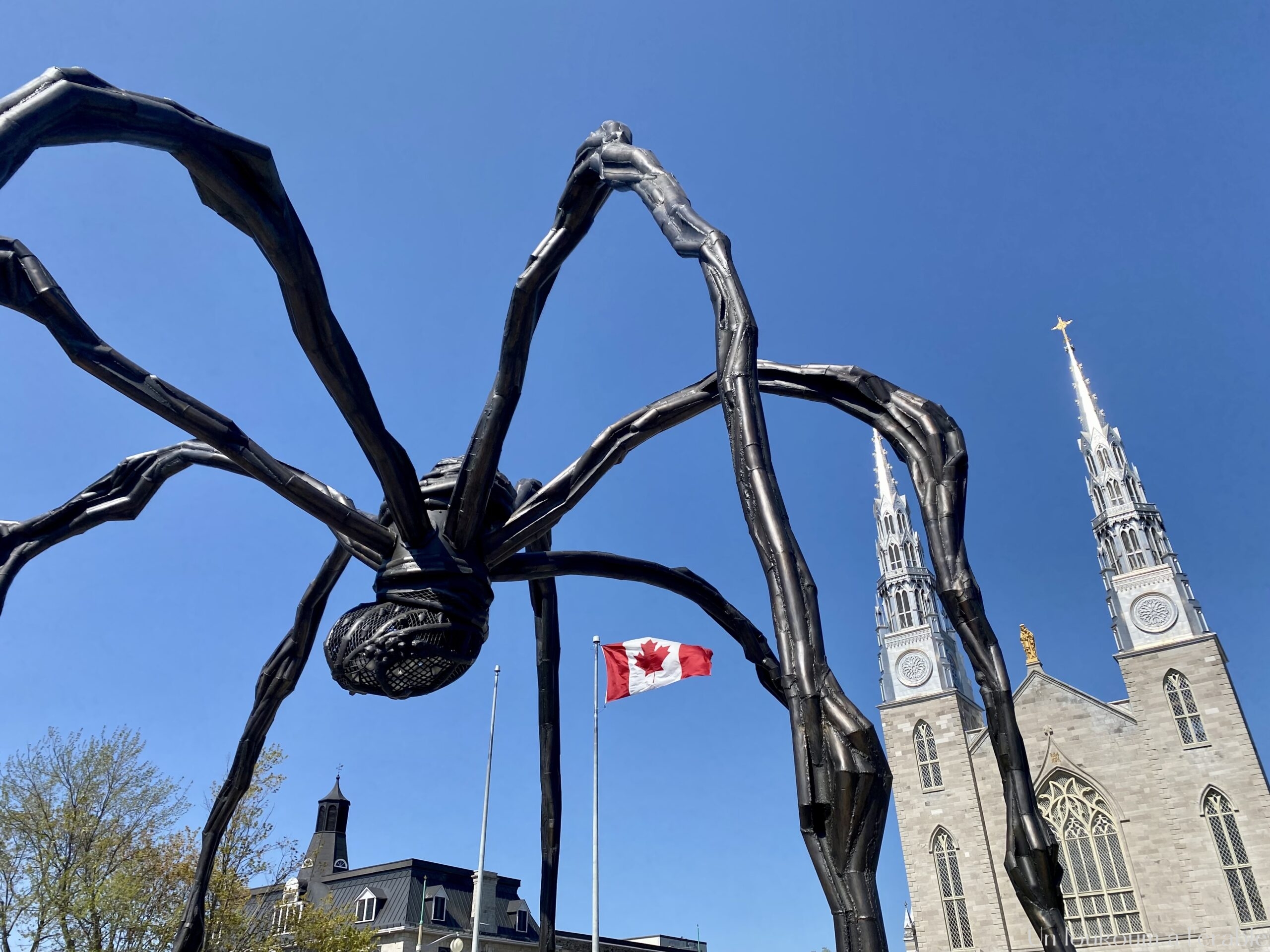 Ensuite, le chemin nous emmène vers le musée des Beaux-Arts d’Ottawa dont l’entrée est gardée par la célèbre “Maman” de l’artiste Louise Bourgeois. J’avais déjà eu la chance de voir la sculpture devant le musée Guggenheim de Bilbao lors d’un voyage en Espagne quand j’étais ado. Et là encore des tulipes et une petite foule qui prend des photos.