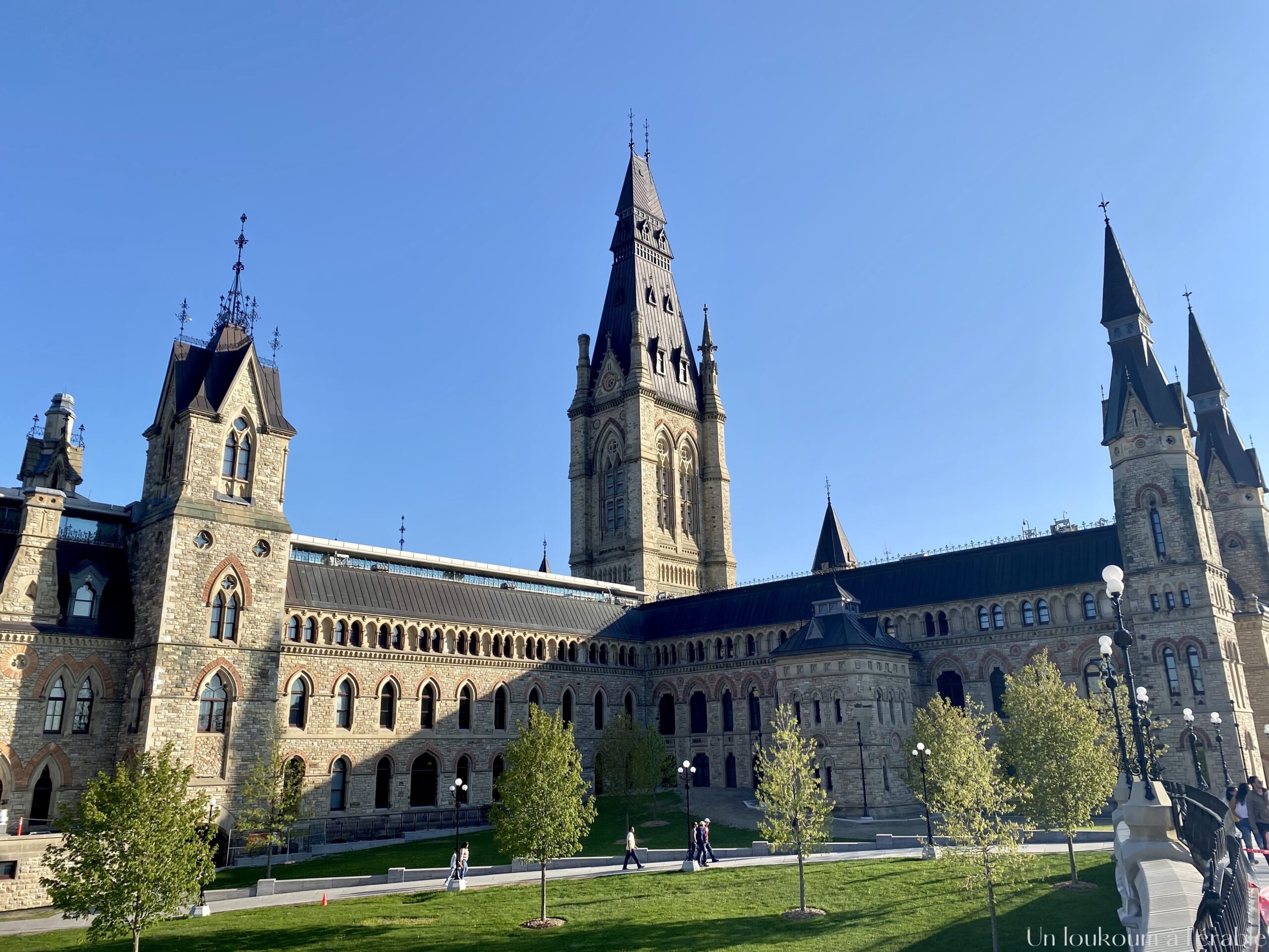 Après le festival des tulipes, nous rejoignons le centre d’Ottawa pour continuer notre balade. Notre hôtel étant situé dans le centre-ville, cela nous permet d’explorer aisément la ville à pied, en commençant par le canal Rideau et ses écluses. La construction du canal date du 19e siècle. Long de 202 km, il lie Ottawa à Kinsgton, sur les berges du lac Ontario plus au sud. Une partie du canal est ponctuée par des écluses et la balade le long du canal est vraiment agréable. C’est une bouffée de nature en plein cœur de la ville.