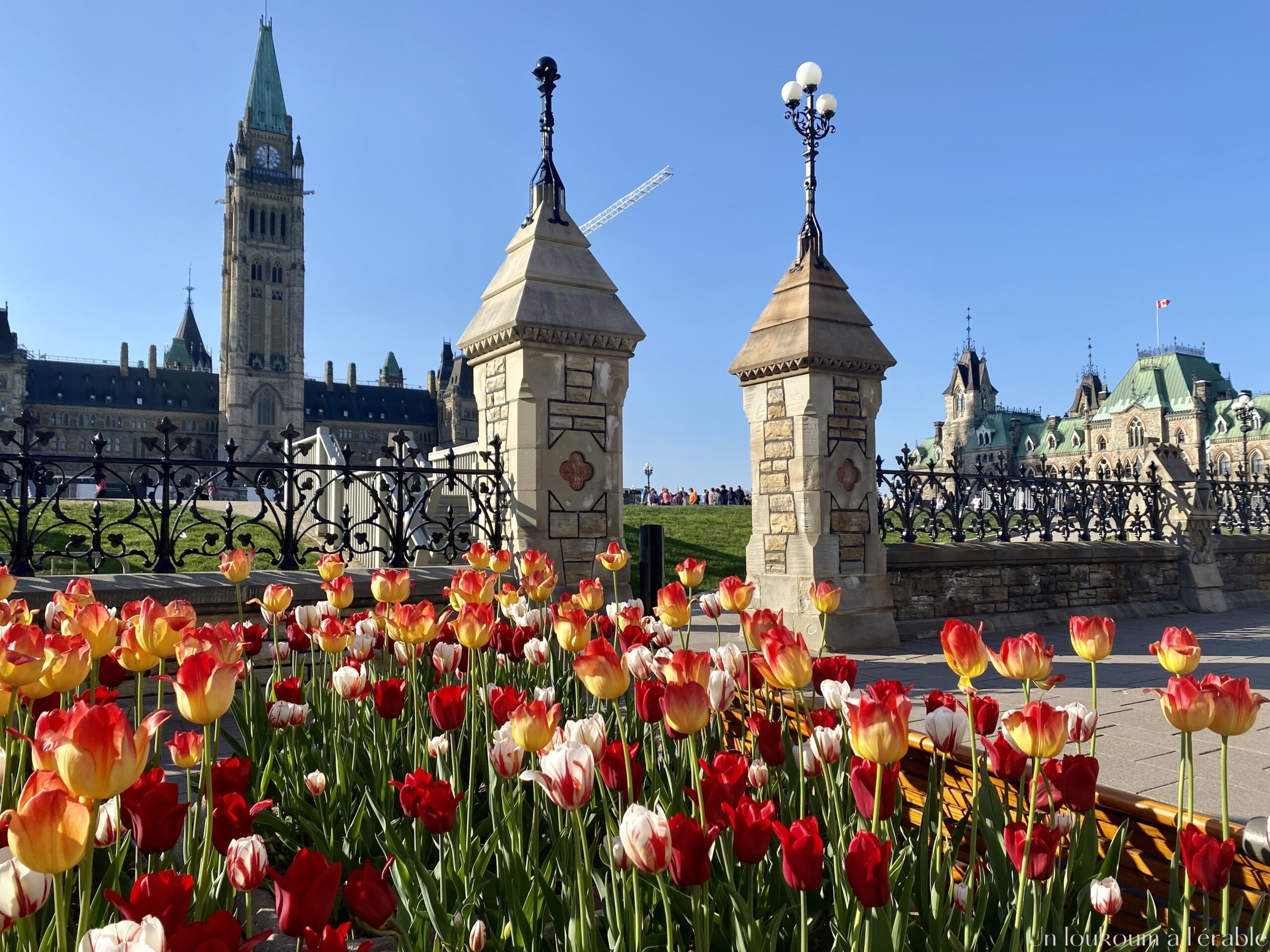 Notre premier arrêt à Ottawa est le festival canadien des tulipes dont le cœur se déroule au parc des Commissaires, en bordure du lac Dow. Un peu excentré, ce parc dévoile toutes ses couleurs au mois de mai. Pendant deux-trois petites semaines, les tulipes sortent de leurs bulbes et réveillent la ville alentour.